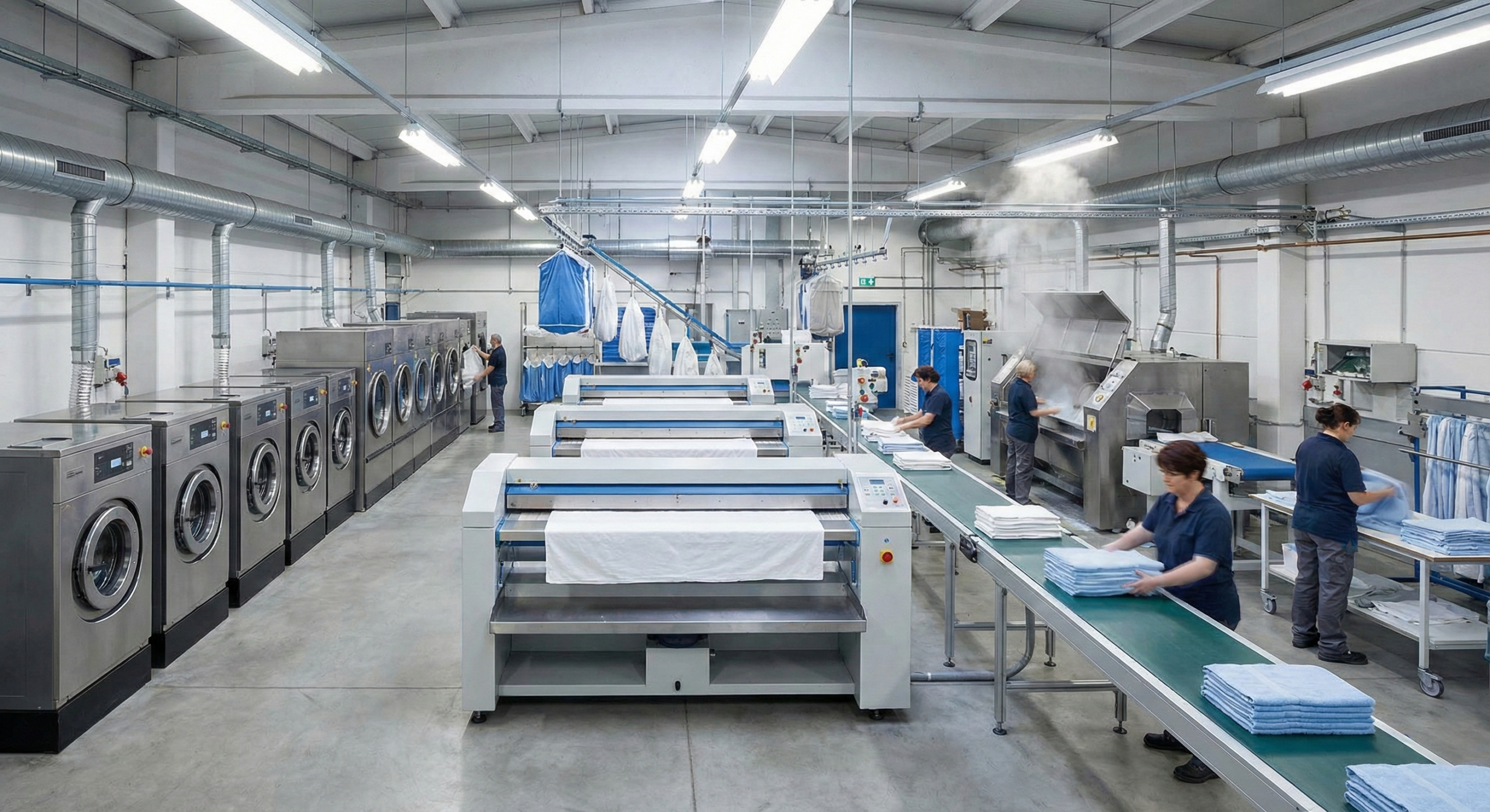 Nous assurons l’installation complète de votre zone de lavage : lave-linge essoreuses, séchoirs performants et calandreuses pour le linge.