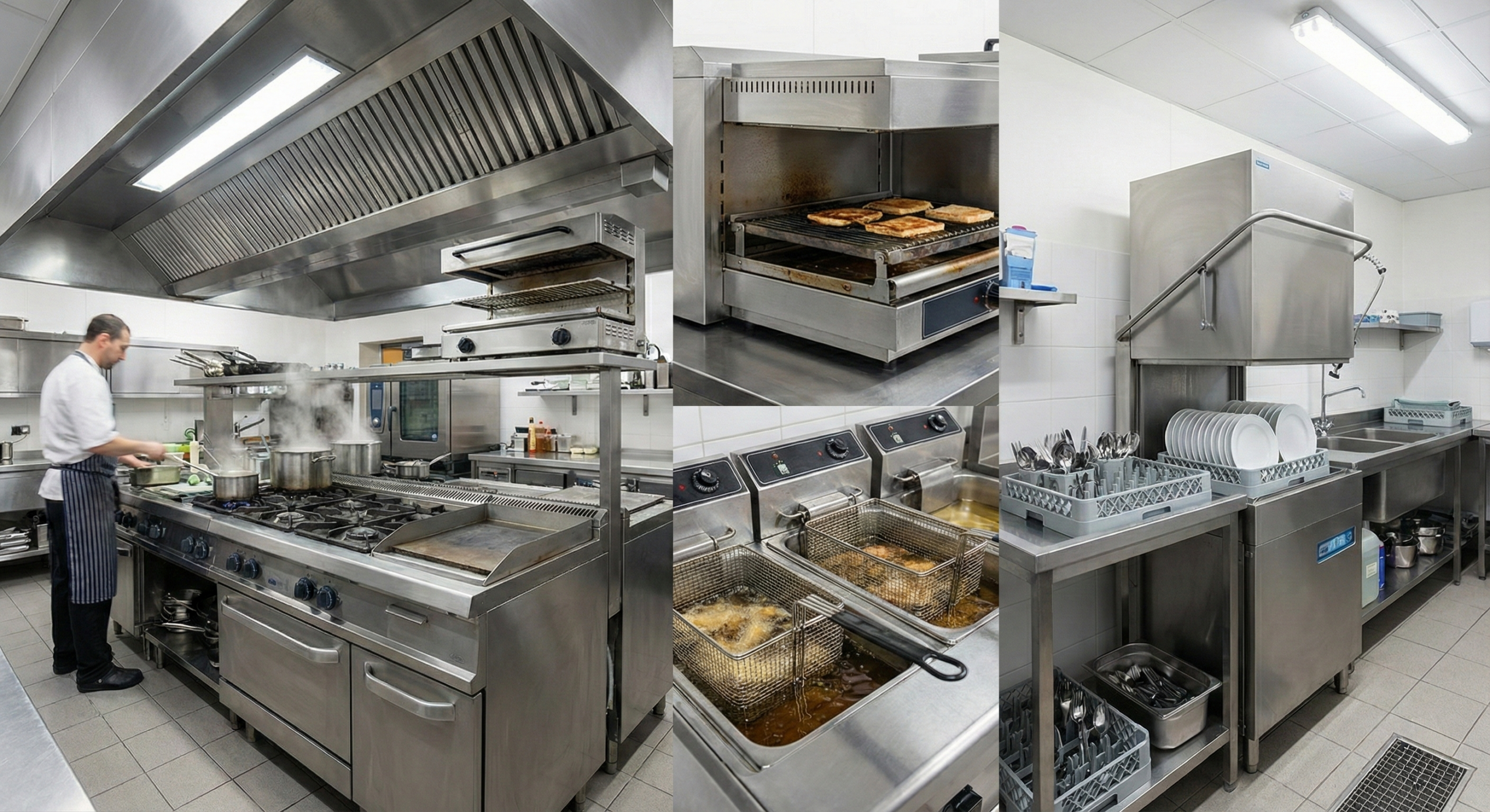 Nous installons l’intégralité de votre matériel : hottes d’extraction, lignes de cuisson complètes (fourneaux, friteuses, grills)